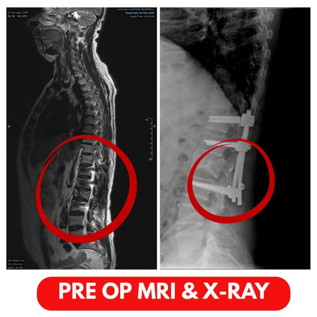 Under the expert care of Dr Hitesh Garg, along with the experienced spine team, including Dr Dheeraj Batheja, Dr Sumit Kumar and Dr Varun Khanna, the patient underwent Revision Spine Surgery with D12–L4 fixation and bone grafting.