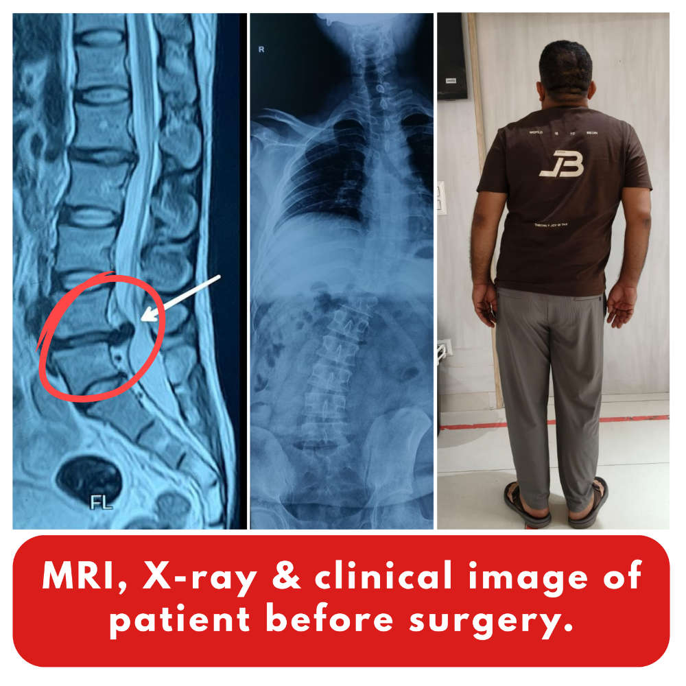 Post-surgery, the patient’s body alignment returned to normal, and his follow-up spine X-ray showed a perfectly straight and healthy spine. The radiating leg pain subsided, and he was able to walk comfortably again within days — a clear sign of recovery and relief for both him and his family.