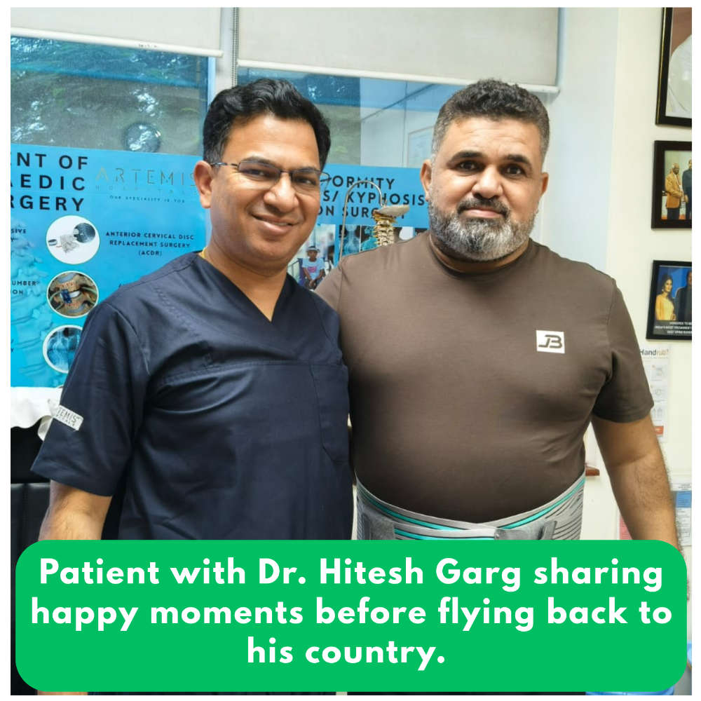 Mr. Basim Mohammad, a man from a city in Iraq, visited Dr. Hitesh Garg, Head of Spine Surgery at Artemis Hospital, Gurugram, with a complaint of persistent back pain radiating down his leg. His family members also noticed a visible change in his posture, where he appeared to be leaning to one side.